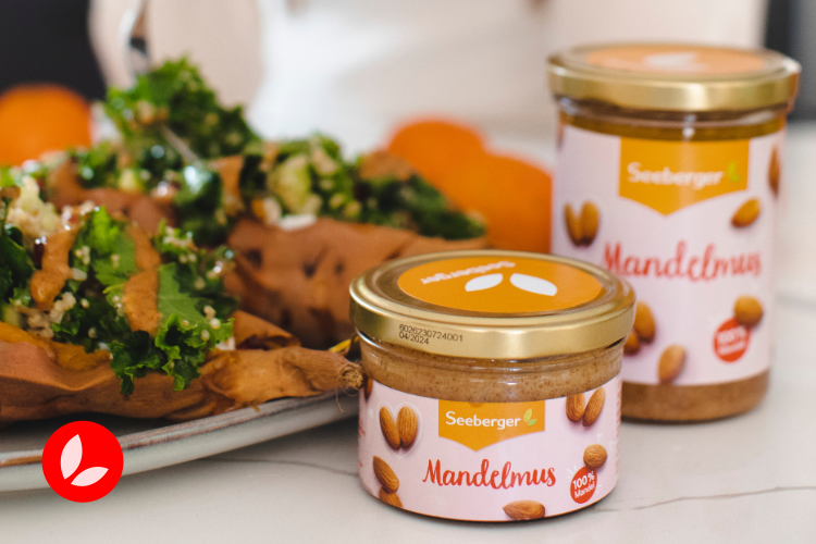 For the almond dressing, mix 2 tsp almond butter, 1 tbsp olive oil, 2 tbsp apple cider vinegar, salt and pepper in a bowl.